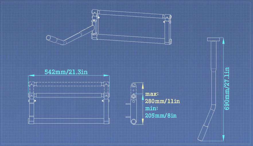 Width of support bar: 44 cm (17.33 in)